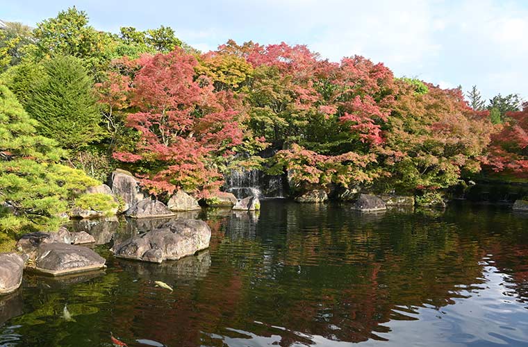 If you look down into the pond, you can see colorful Nishikigoi swimming leisurely. Carp are a symbol of longevity and prosperity, and have long played a role in adding movement and color to the tranquil waterscape. The sight of Nishikigoi in a kaiyushiki garden is a beauty that can only be found in Japanese gardens, which have been enjoyed since ancient times.