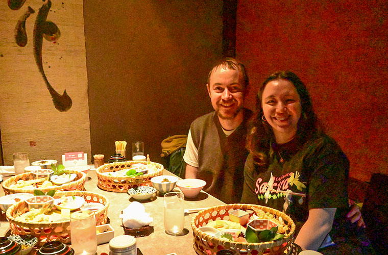 The seating in the restaurant is a Japanese-style sunken kotatsu (a table with a hole in the floor). It is a great place to stretch your legs after a long day of pedaling.