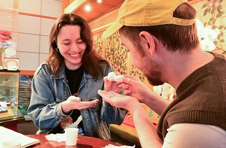 After hearing the guide’s explanation, it’s time for tasting. Participants exclaim, “It’s so chewy and delicious!”, “Such a refined sweetness!”, “It looks beautiful!” After enjoying the lingering gentle flavor, it’s time to head to the next destination.