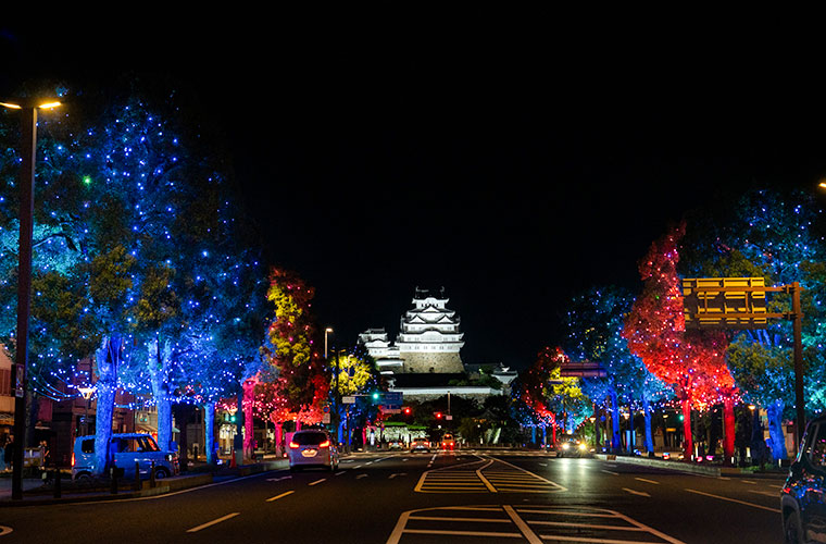 For two special nights, the plaza in front of the station transforms into an open-air bar, where local restaurants, sake breweries, and craft beer makers come together for a lively evening under colorful red and blue illuminations in Myaku Myaku colors, celebrating the Osaka Expo. Enjoy delicious food and drinks while soaking up the festive atmosphere right in the heart of Himeji!